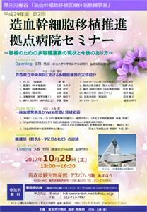 平成29年度第2回造血幹細胞移植推進拠点病院セミナー開催のお知らせ(2017/10/28開催)